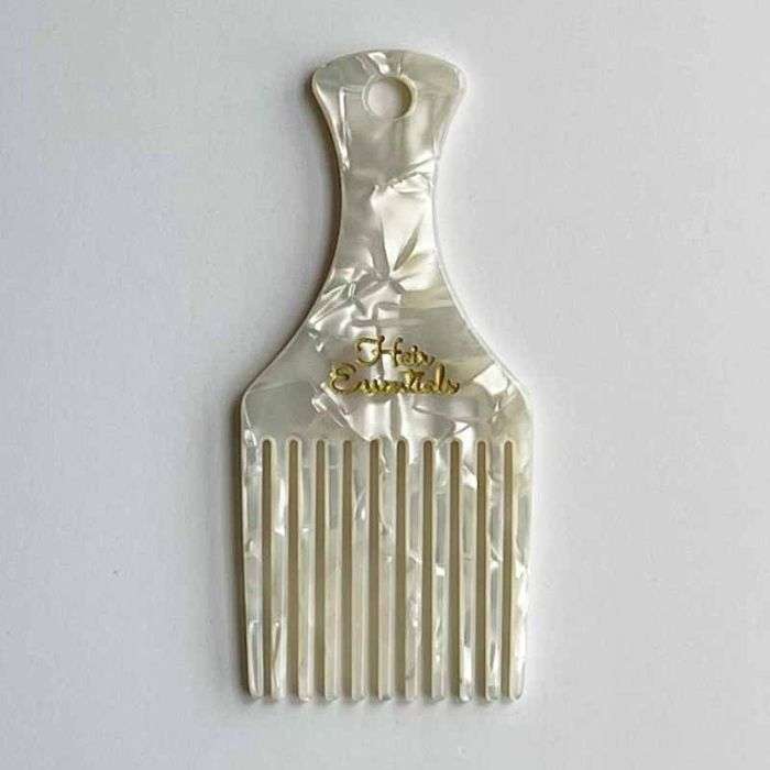 Round, smooth edged, wide tooth hair pick. Use to fluff roots to add volume without creating frizz.